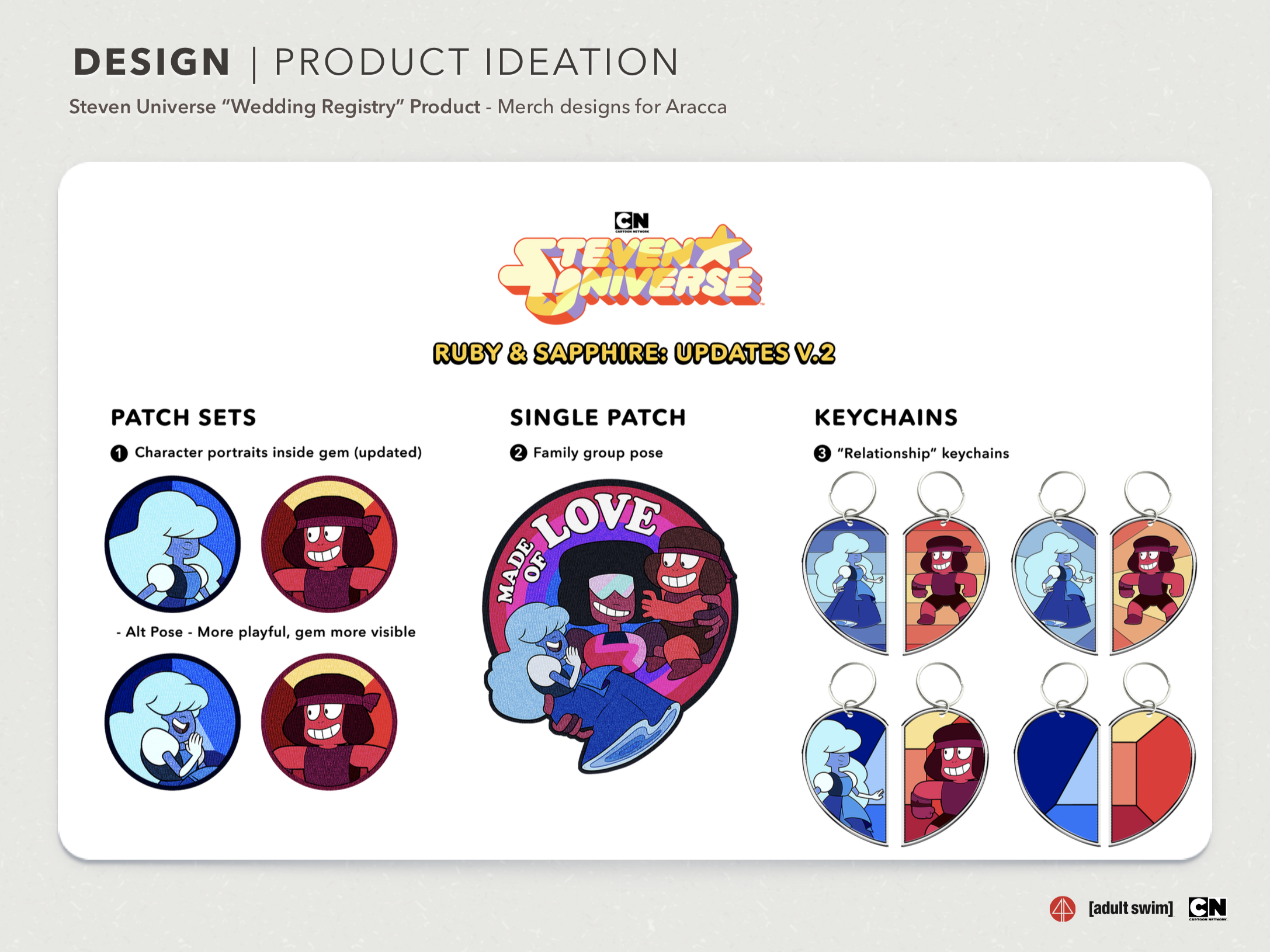 For Cartoon Network and Adult Swim I do a lot of product ideation, design and illustration. Here’s a gallery of some polished, non-retro looking artwork and composited mock-ups I made for style guides, presentations and a fashion show.